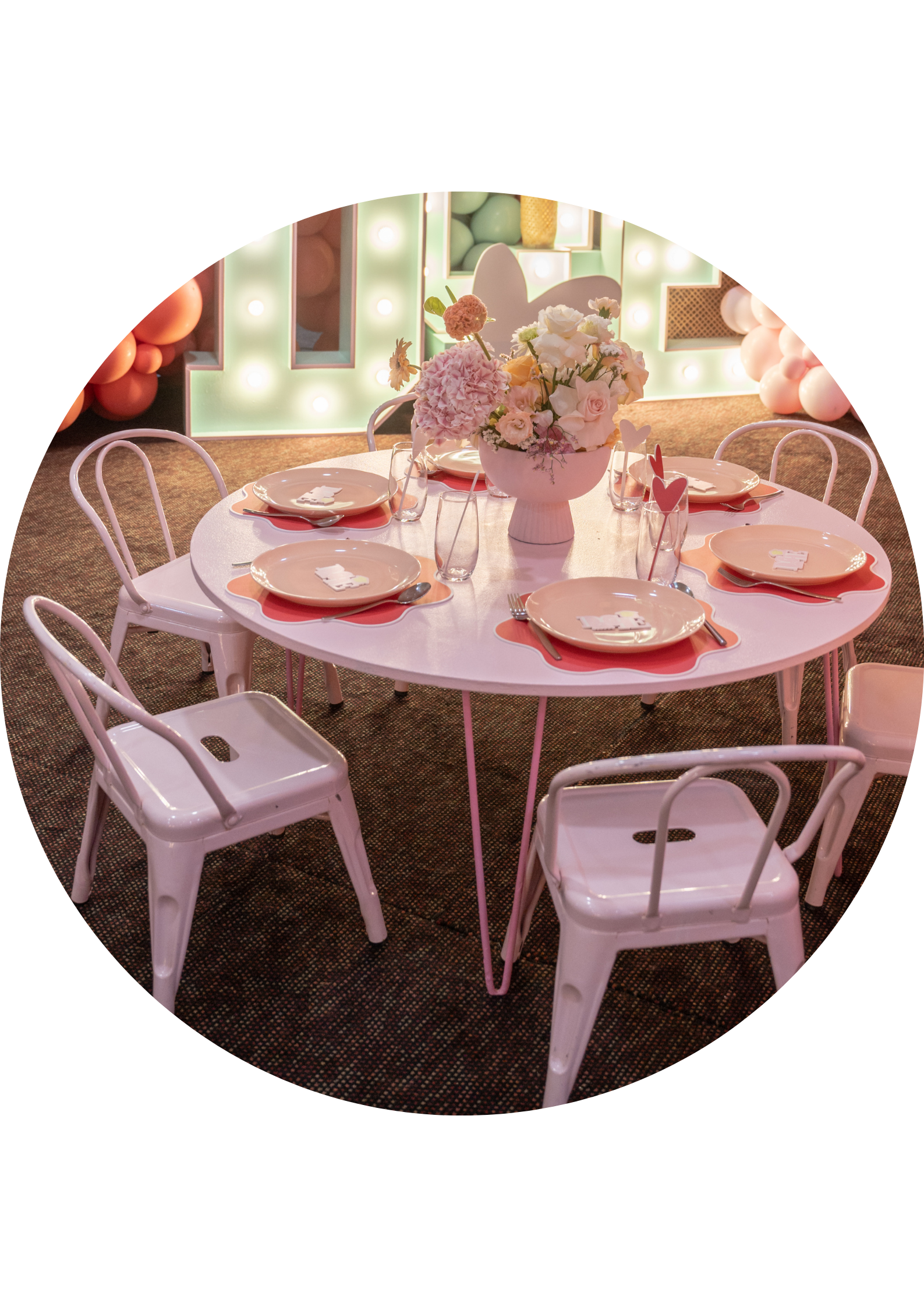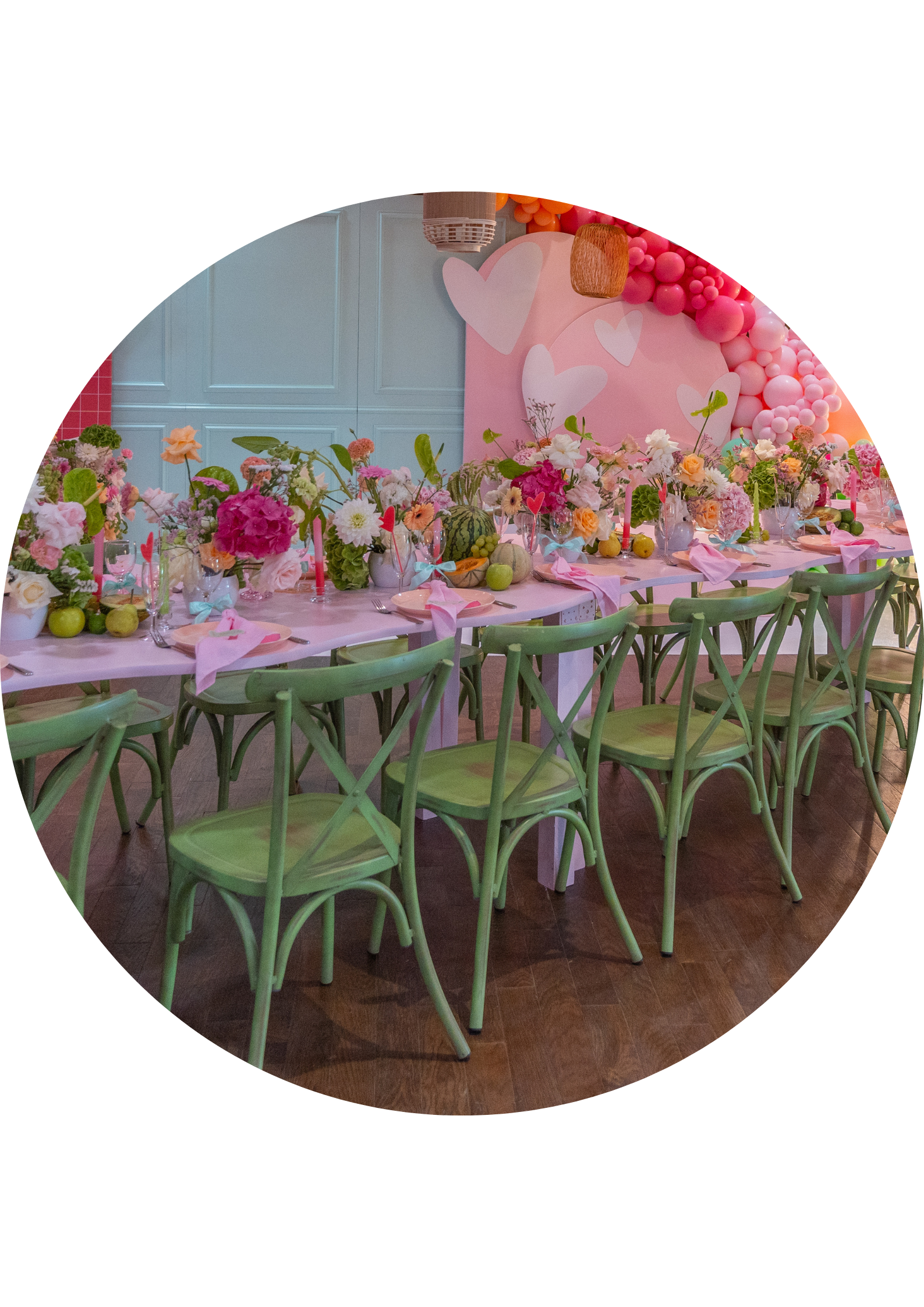 Nous préparons de magnifiques tables avec soin : mobilier, vaisselle, nappage, accessoires et personnalisation pour une harmonie parfaite.