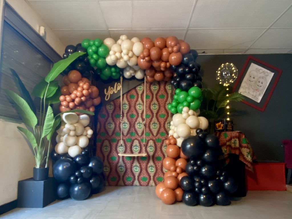 – Balançoire ballons bohème chic pour garden party