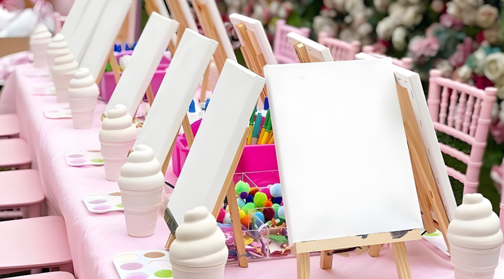 - Installation d’espaces immersifs : photo corner, zone atelier, table décorée