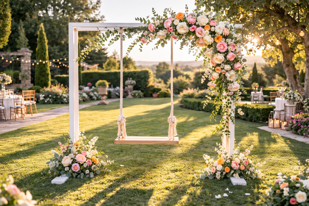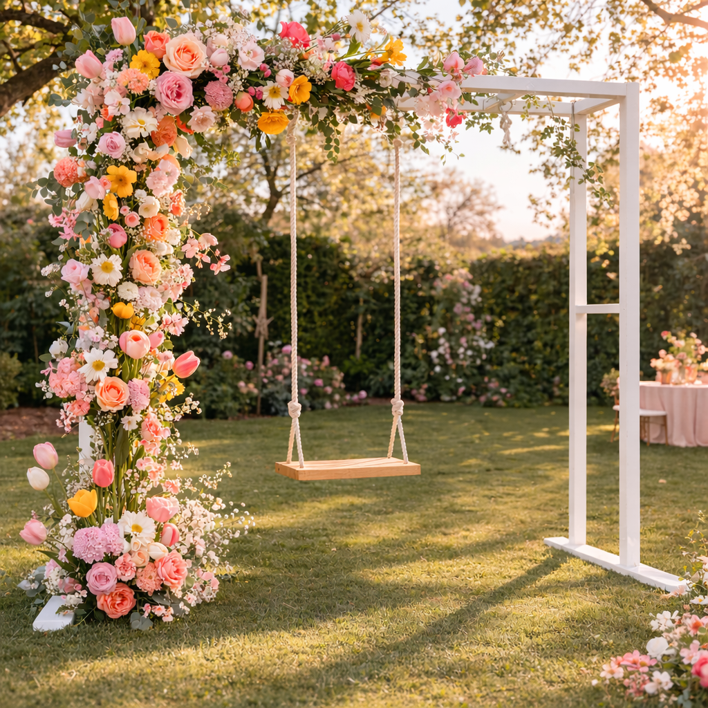 Parfaite pour compléter une décoration florale, un espace photobooth ou une scénographie événementielle, notre balançoire s’intègre facilement dans différents univers décoratifs : bohème, chic, romantique ou moderne.