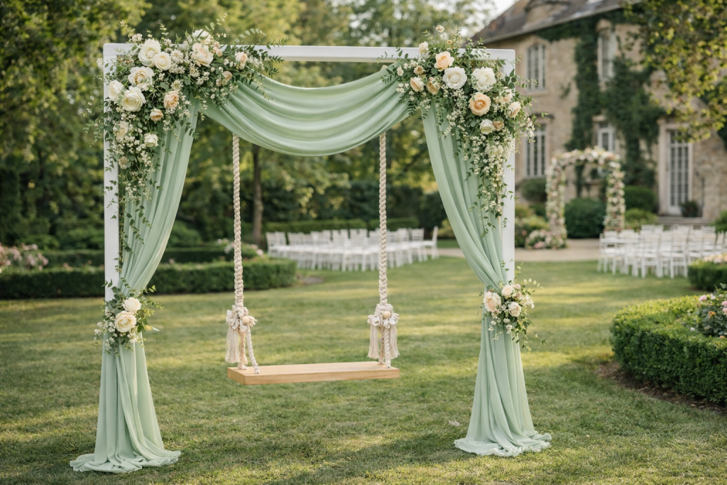 Apportez une touche poétique et spectaculaire à votre événement avec notre balançoire décorative à louer en Île-de-France, idéale pour créer un espace photo élégant et original lors de vos réceptions.