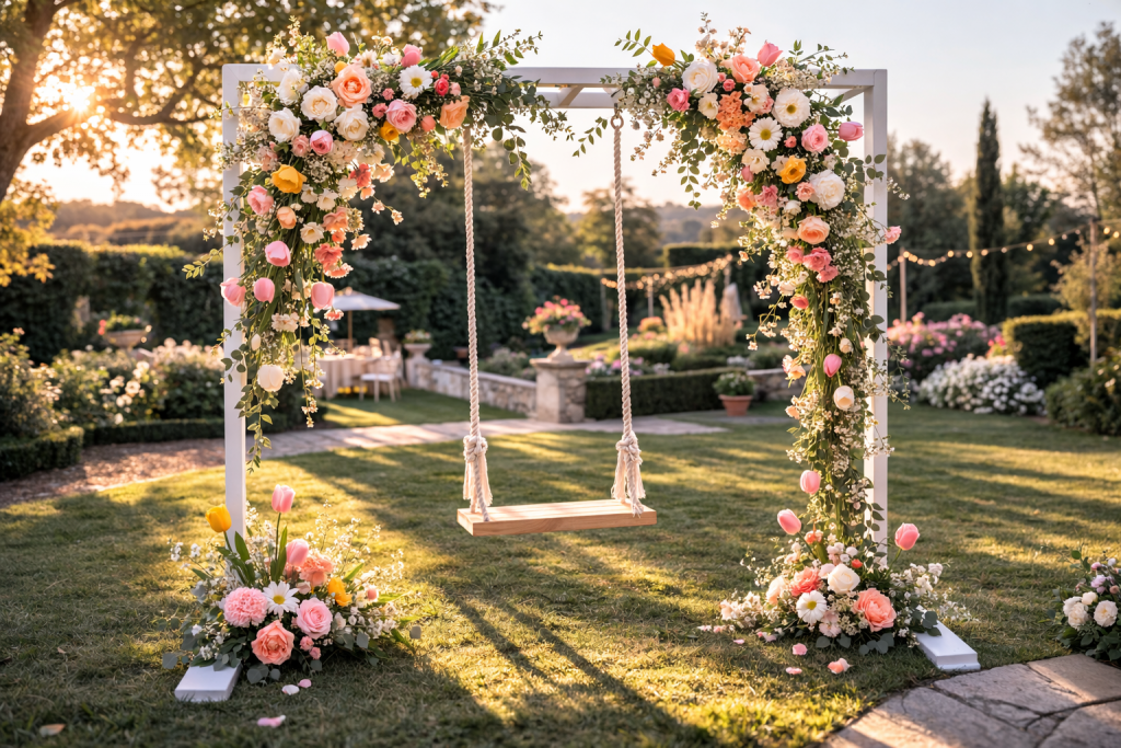 Très appréciée pour les anniversaires, baby showers, baptêmes, mariages ou événements privés, la balançoire devient rapidement un élément central de votre décoration événementielle. Installée au cœur de votre scénographie, elle attire naturellement les invités et offre un décor photo unique et mémorable.
